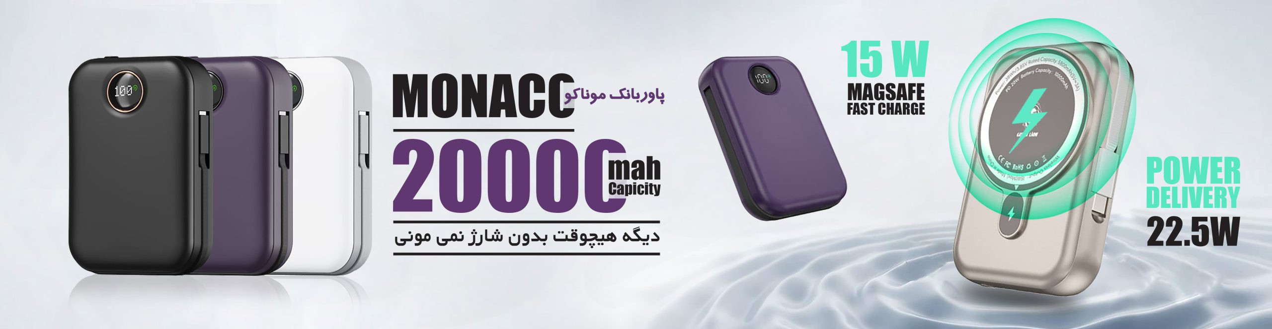 پاوربانک گرین لاین مدل Monaco ظرفیت ۲۰۰۰۰ میلیآمپر ساعت مگ سیف۳٬۸۰۰٬۰۰۰ تومان