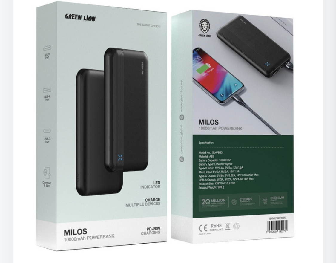 پاوربانک گرین مدل Milos ظرفیت ۲۰ هزار میلی آمپر۱٬۸۰۰٬۰۰۰ تومان