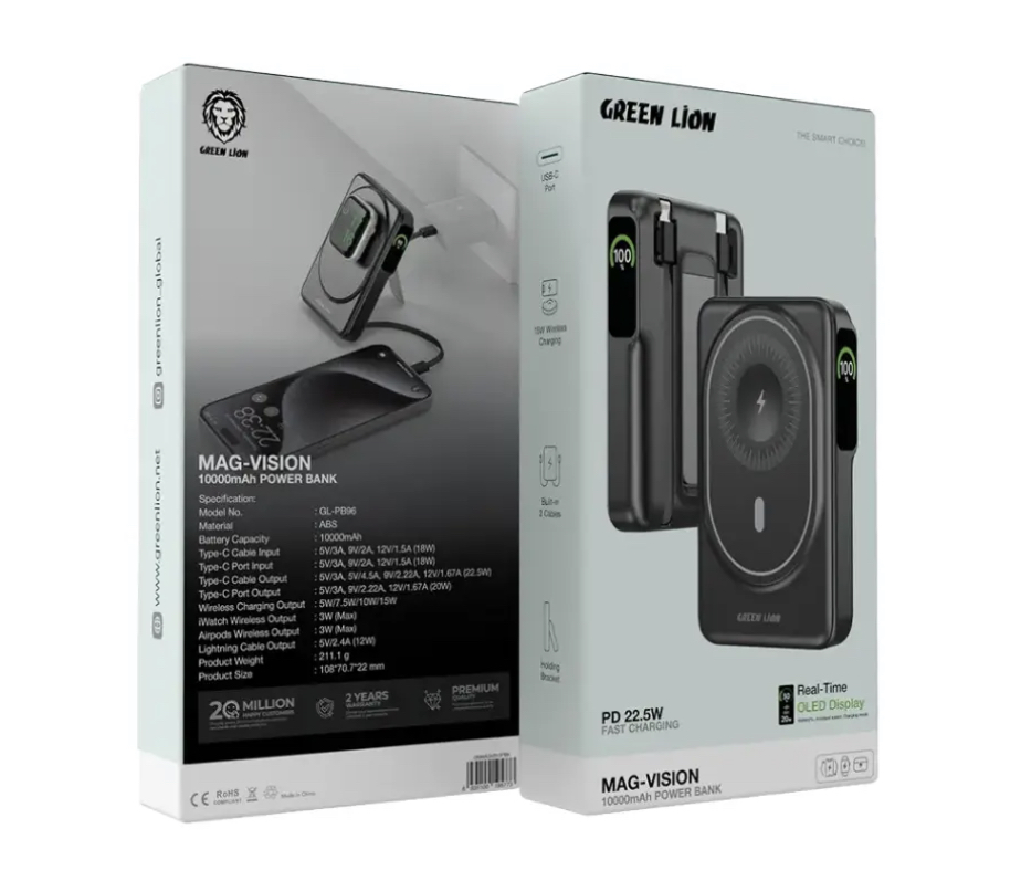 پاوربانک 22.5 وات گرین لاین مدل Mag-Vision ظرفیت 10000 میلیآمپر ساعت۳٬۵۰۰٬۰۰۰ تومان