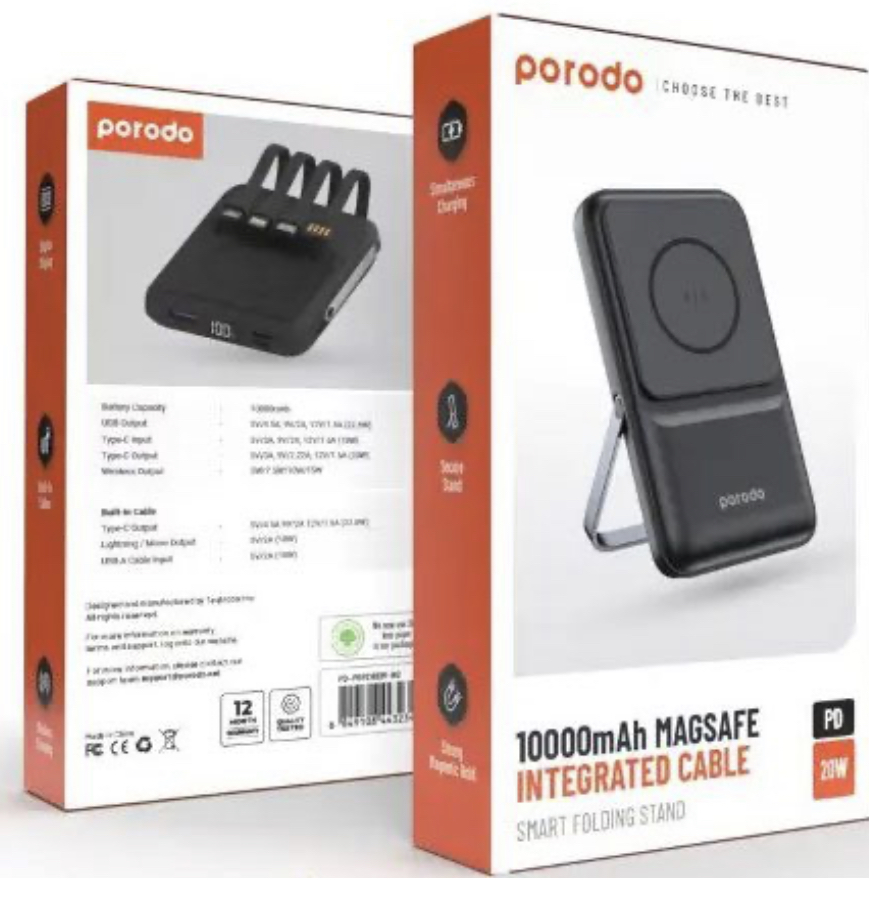 پاوربانک 10000mAh مگسیف پرودو مدل Integrated Cables PD-